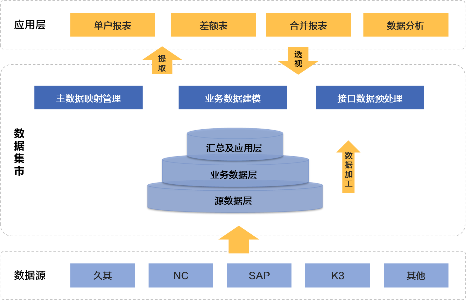 中铝集团基于内外部复杂的环境分析及发展需求,决定在财务管控信息化平台的基础上,建立财务数据集市平台,通过财务数据集市平台的搭建实现对集团财务数据的有效管理,进而深层次的管理和挖掘财务数据的内在价值,真正实现“用数据说话”,从而为集团战略性决策分析提供直接、真实、可靠、及时的数据源。
