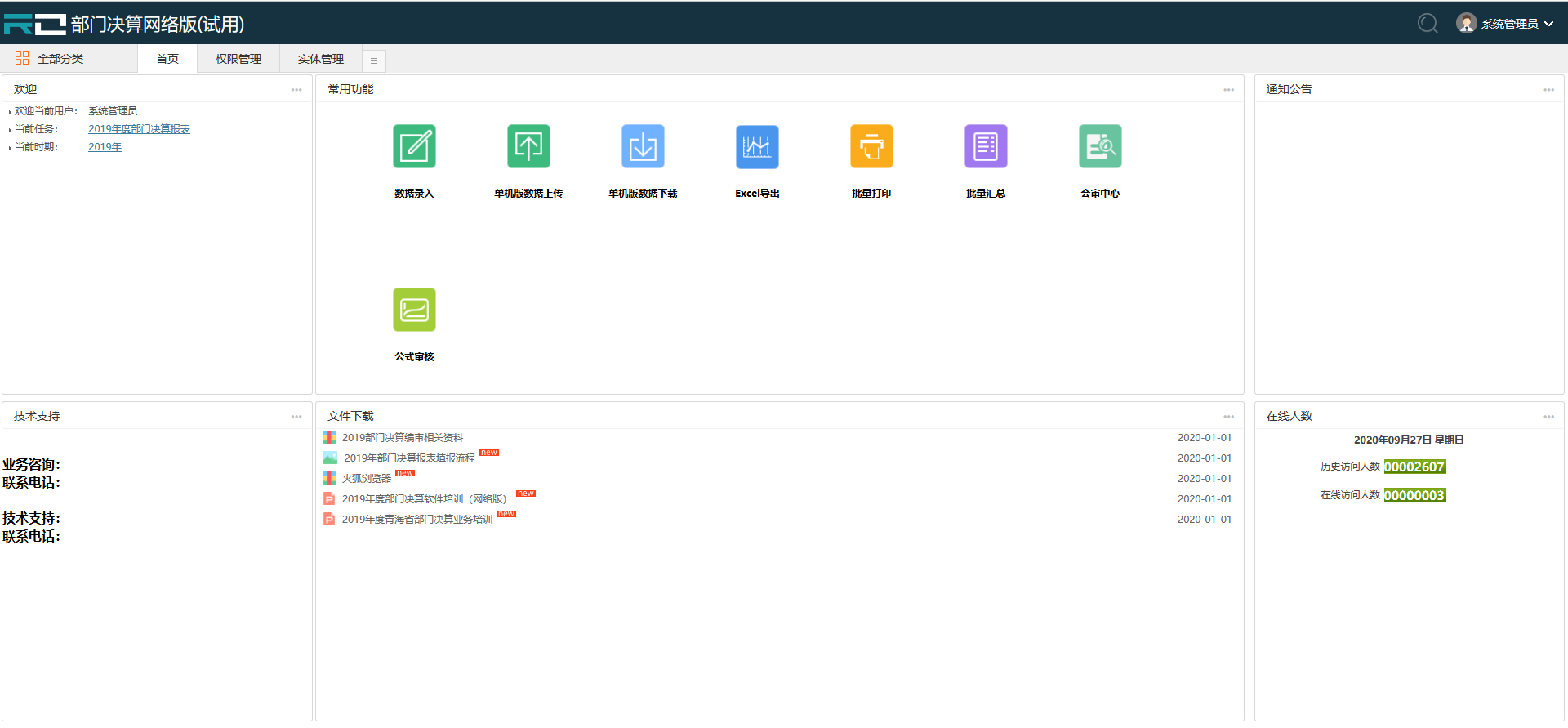 部门决算网络版软件为预算单位提供部门决算网络化工作任务的数据采集、审核、汇总、批复、查询和分析等功能,通过对一键审核、一键批复、一键公开、一键报告等功能的使用,一方面减轻工作人员手动录入的负担,另一方面保持了数据的一致性,从源头上规范了数据质量,减少单位填报工作量,最终实现财政业务数据一体化。