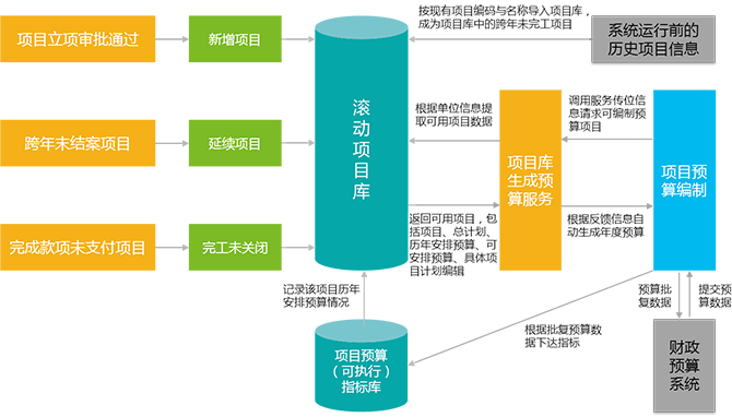 实现管理部门对交通工程建设项目的纵横管理:纵向方面,主管部门能够利用系统收集预算项目申报信息,统筹项目预算资金分配,加强基本项目预算管理,科学规范项目预算编制,提高财政资金使用效益;横向方面,各单位进一步实现预算项目的精细化管理,利用数据共享机制与财政部门预算系统、财务核算等系统进行对接,构建单位内部项目预算、执行、核算的业务一体化管理闭环应用,实现项目预算信息的全程跟踪管理。