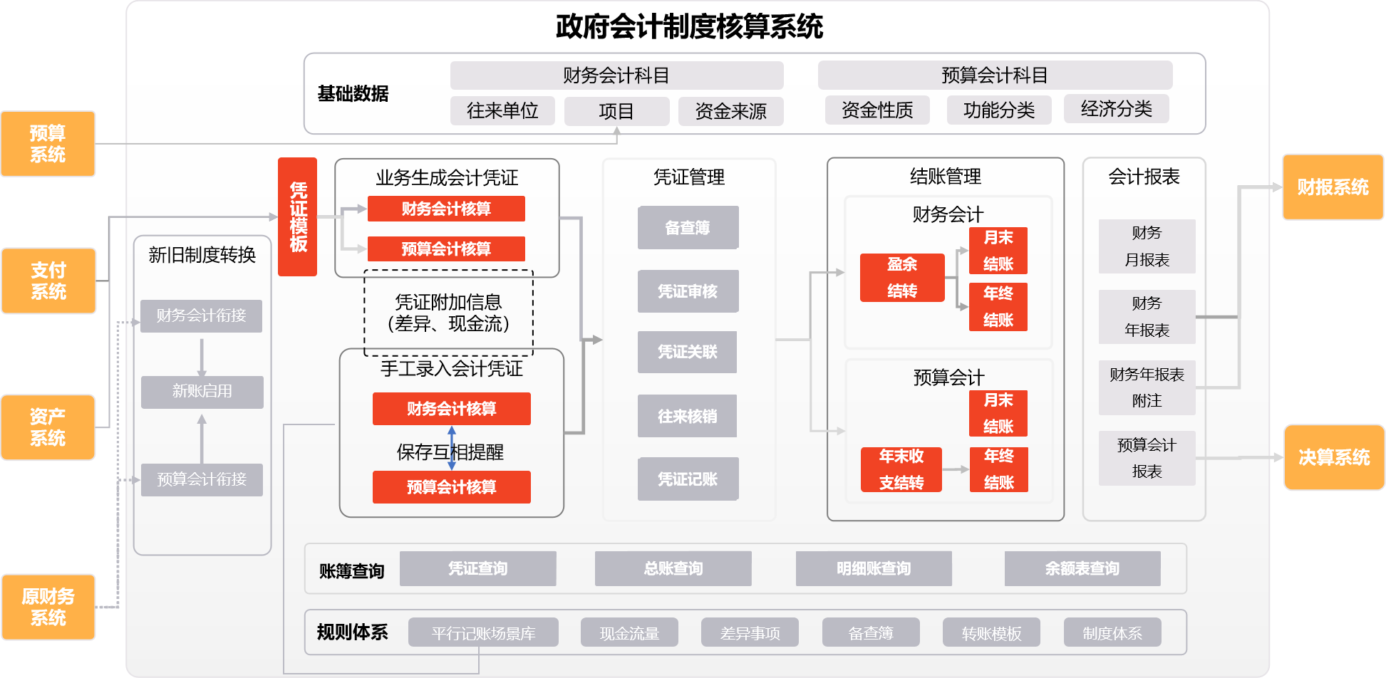 财政财务管理平台,是财政预算一体化管理平台的重要一环,需要对于现有业务平台进行完善改造,同时要响应财政部提出的各种要求。财政财务管理的核心是在于统一的规范,因此该系统会建立在现有财政数据规范之上,完善财务相关规则,建立更加完善的财政财务基础数据规则体系。