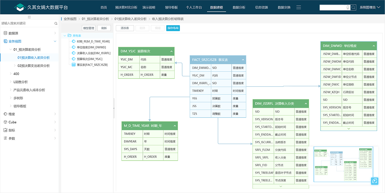 女娲大数据平台提供了统一元数据建模工具,支持从底层数据仓库到上层的数据集市,从多维数据模型到离散的指标数据模型,从结构化数据到非结构化数据,多形态的数据建模,帮助政企客户构建统一的数据视图,为整合各个业务系统的数据、实现跨业务领域分析打下坚实的基础。