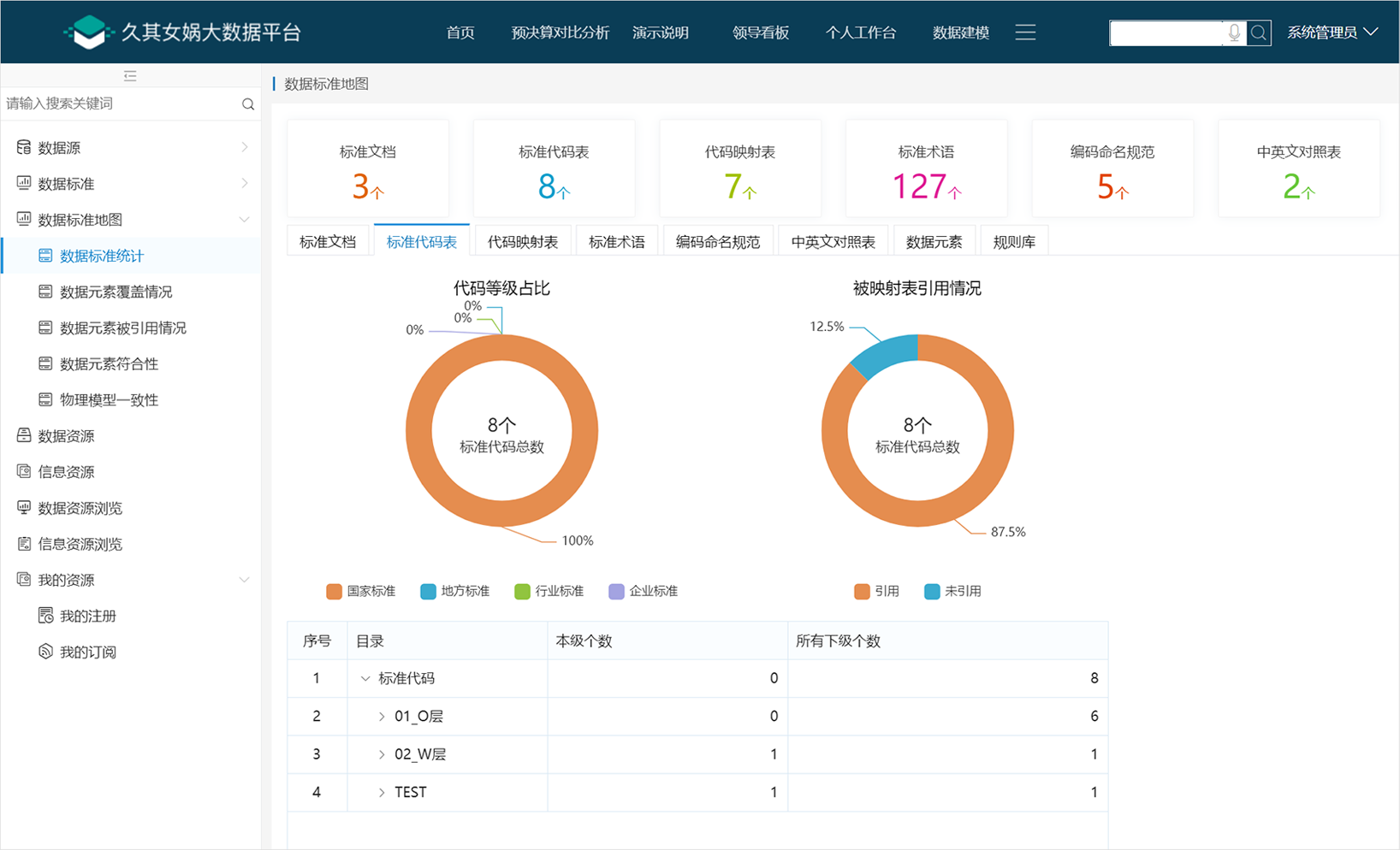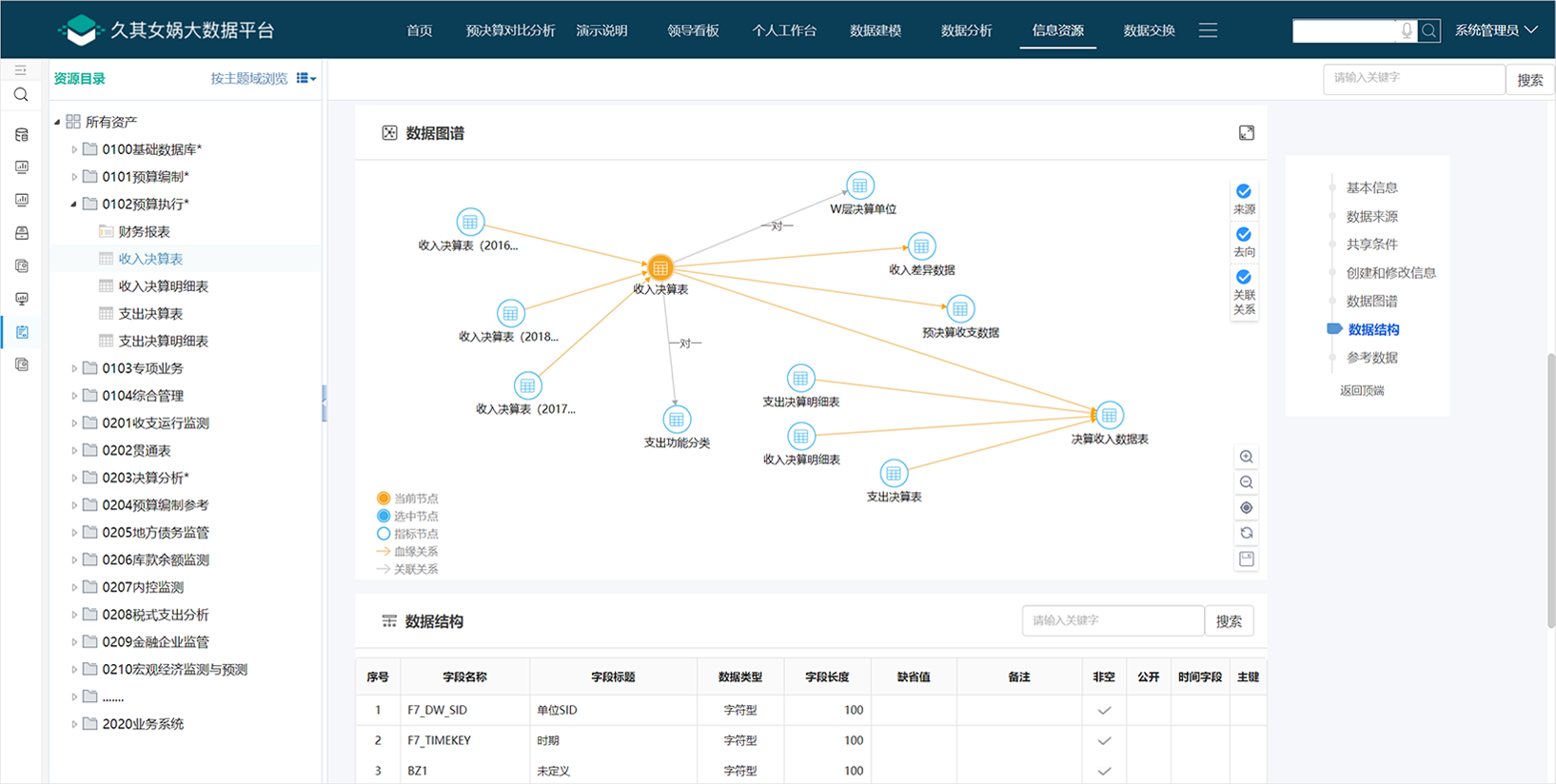 女娲大数据平台提供完整的信息资源管理功能,遵循信息资源规划(IPR)方法论,可以实现对政府或企业的所有数据信息资产的规划和管理。支持构建统一的数据标准;通过在技术元数据基础上附加业务语义层描述,帮助客户创建统一的、面向业务域的数据资产目录;为所有数据提供索引管理,更好地实现数据的分析、共享和交换。