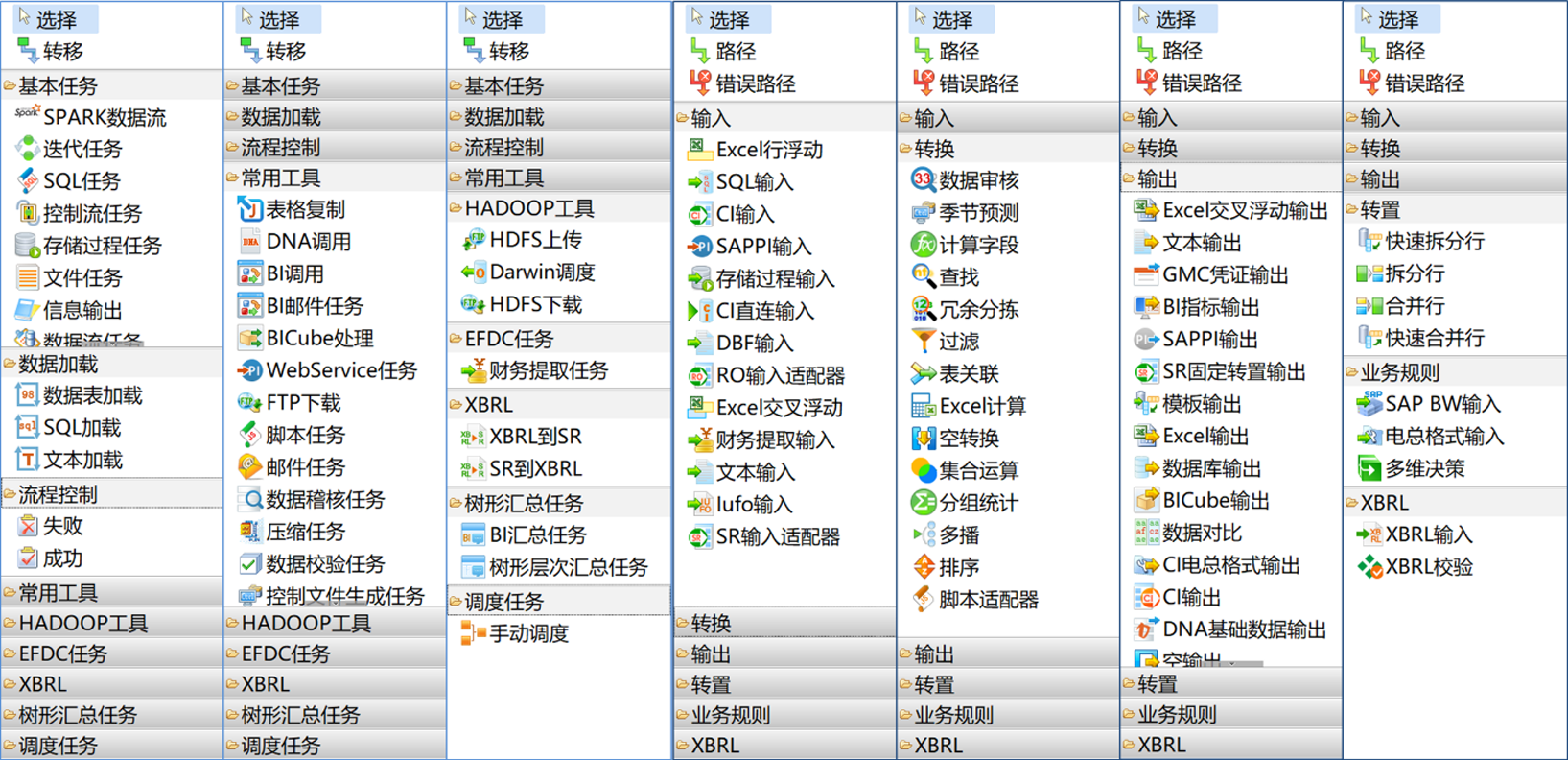 ◎ 提供应用于不同场景的数据集成工具,能够实现关系型数据、离散型数据、日志/流数据、互联网数据的整合与集成;