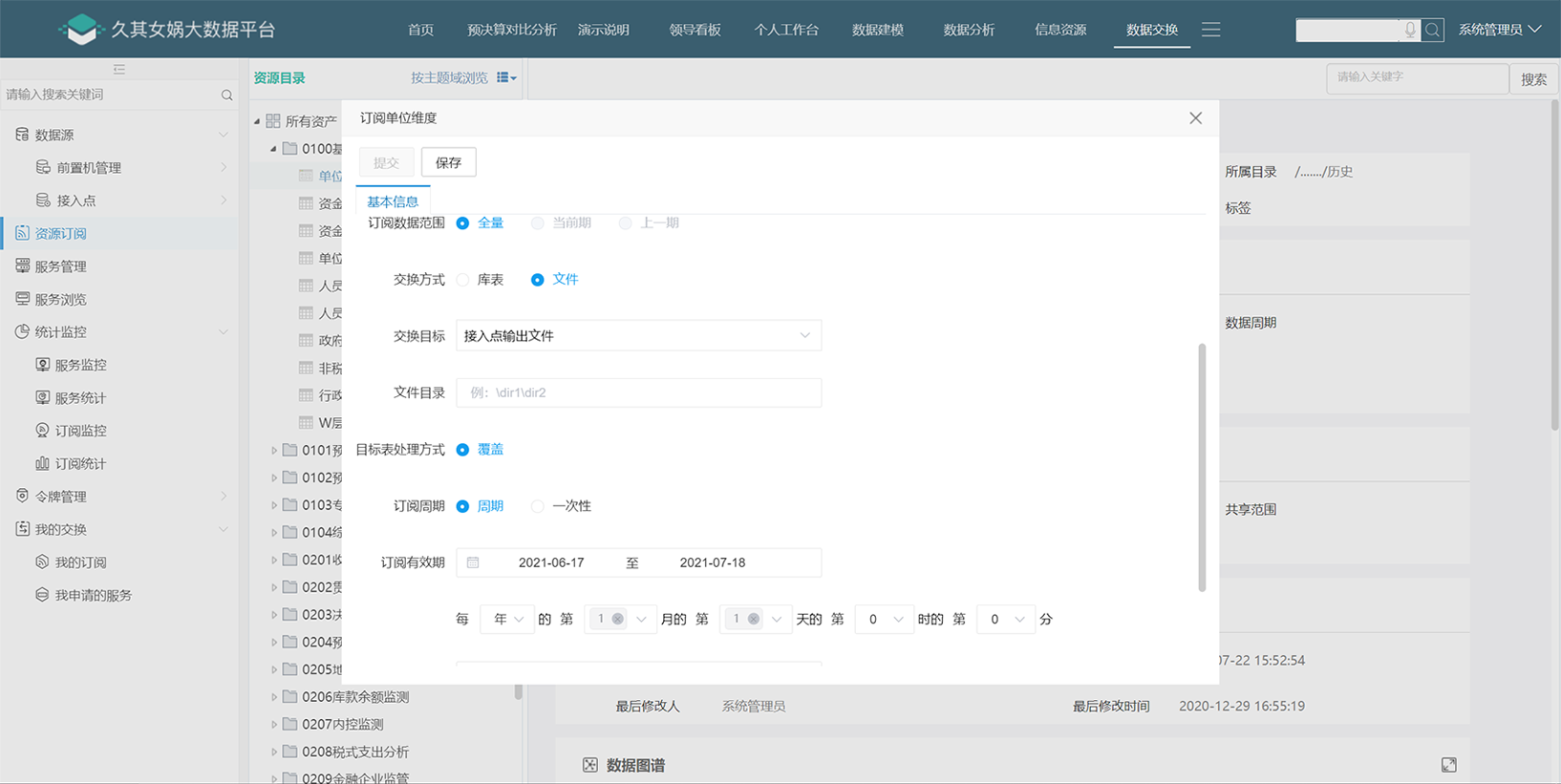 女娲平台提供的交换中心可以实现主数据和业务数据的交换和共享,支持数据“推”和“拉”两种交换方式,以及数据文件、库表、消息和Web服务调用等数据交换技术形式。