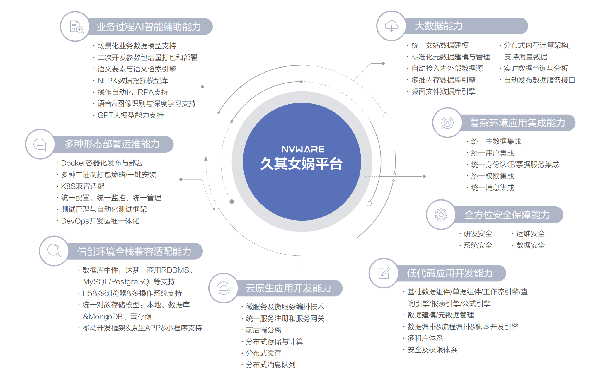 PG 女娲平台(NVWARE)聚焦八大能力建设,将成为政企复杂业务场景的创新中心、大数据及云计算时代的能力中心、赋能行业的应用中心。