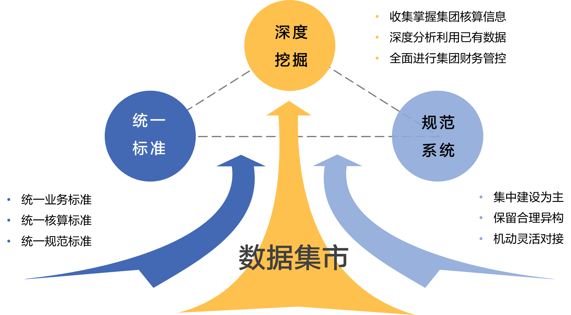 中铝集团基于内外部复杂的环境分析及发展需求,决定在财务管控信息化平台的基础上,建立财务数据集市平台,通过财务数据集市平台的搭建实现对集团财务数据的有效管理,进而深层次的管理和挖掘财务数据的内在价值,真正实现“用数据说话”,从而为集团战略性决策分析提供直接、真实、可靠、及时的数据源。