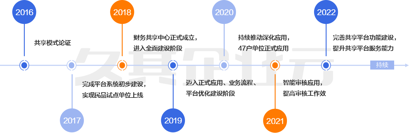 2018年财务共享中心正式成立,进入全面建设阶段,同时拓展发票池系统建设。