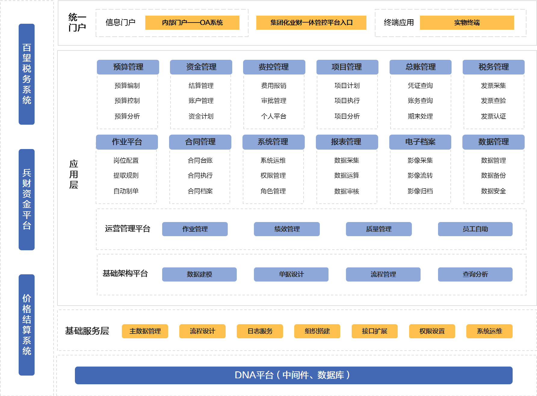 集团化业财一体管控平台以共享技术平台为载体,融合业务数据,融入一机集团管理特色,建立了一机集团统一的数据标准、内控标准和制度标准。同时借助影像管理和线上办公,提高了内部审批工作效率,加强了企业管控力度。集团化业财一体管控平台项目建设内容主要包括以下两个方面: