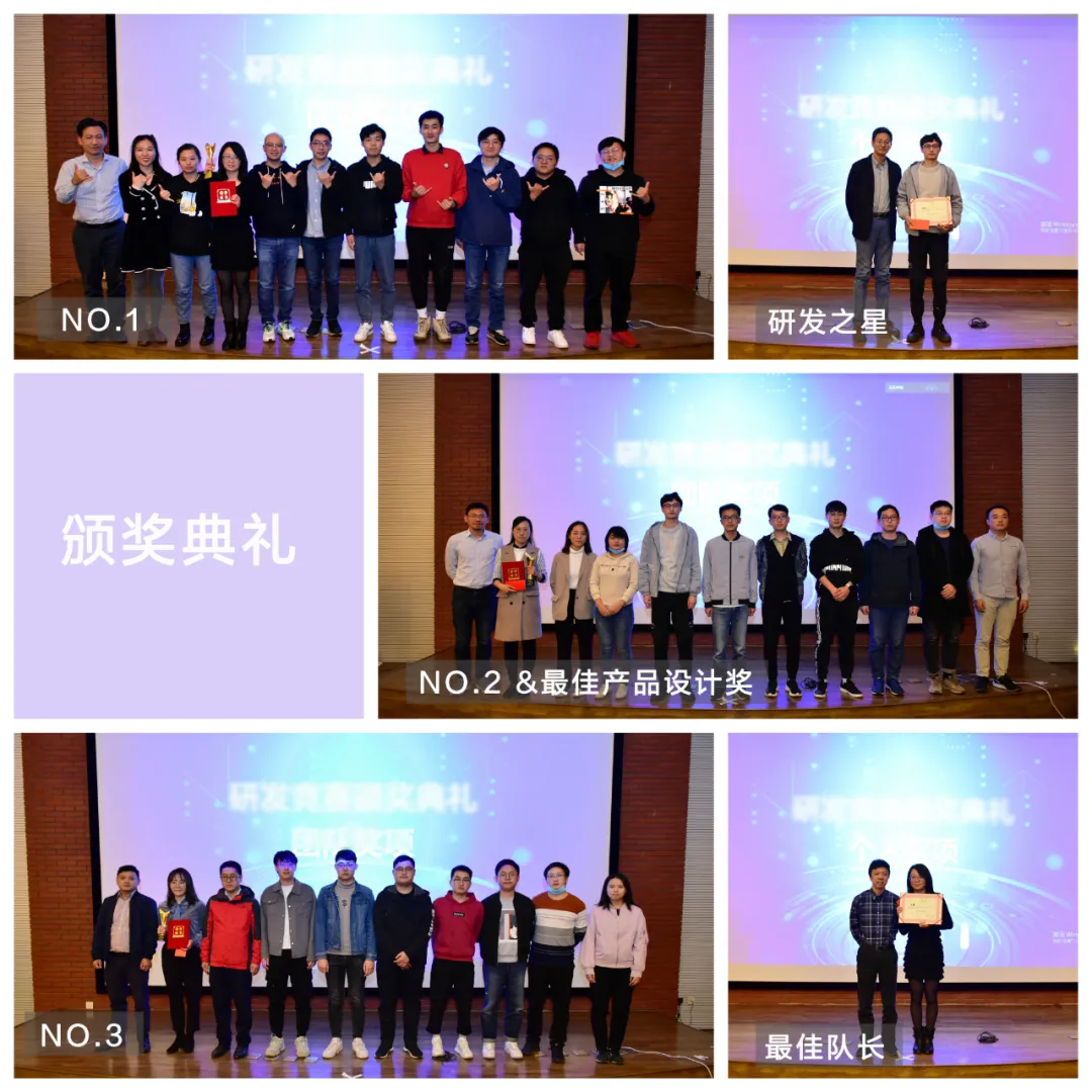 经过技术检测、技术专项评审、汇报评审三个环节的综合打分,“6的飞起”队脱颖而出摘得冠军,“乘风破浪8”队获得亚军以及最佳产品设计奖,“聚达”队为季军。同时,还评选出了个人奖项“研发之星”和“最佳队长”,表彰优秀的研发骨干以及在本次研发竞赛中表现突出的队长。