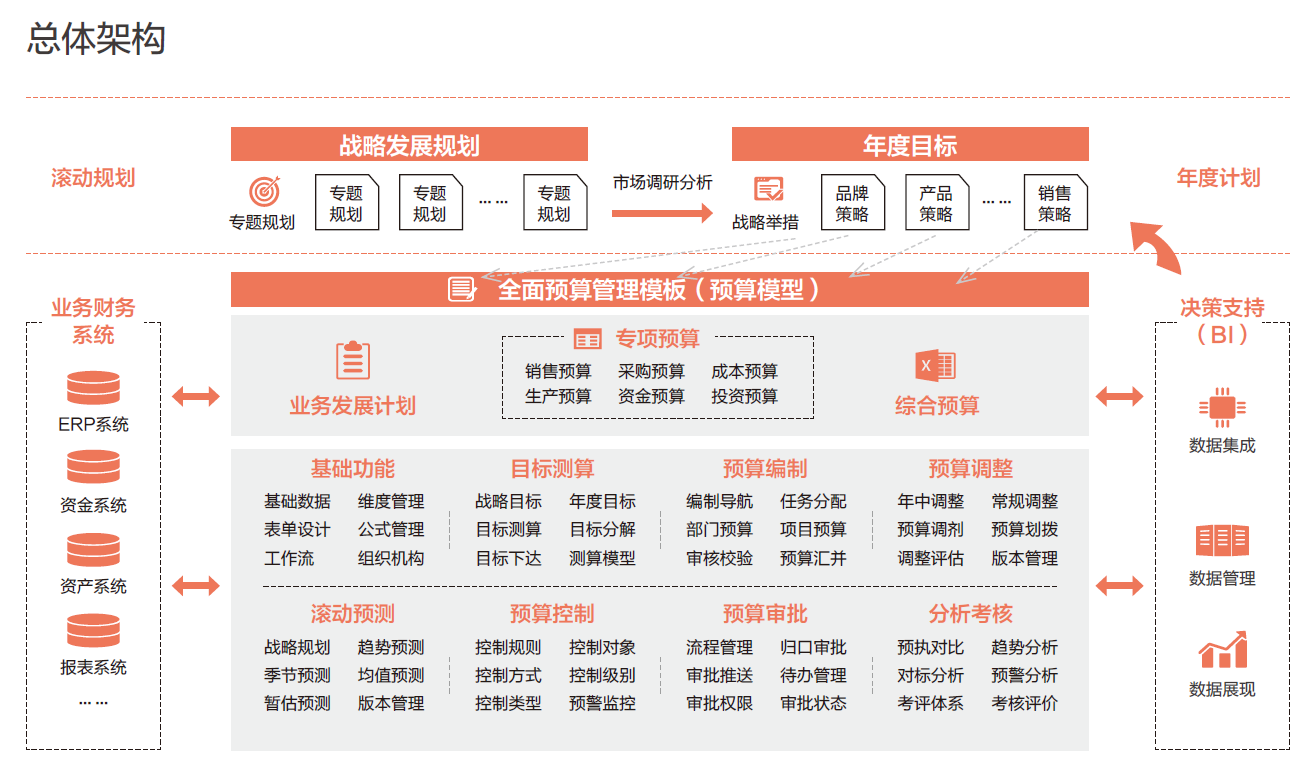 1. 将战略目标、预算编制、预算平衡、预算控制、预算分析、预算考核电子化,形成“战略-预算-考核” 的企业战略管理闭环;