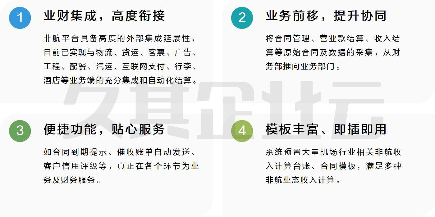 在非航收入管理方面建设统一的非航结算平台,优化和改进操作流程,从机场商业资源、客户资源、合同管理、核算管理和财务分析及系统安全性、拓展性各方面进行全方位管理,以利用先进的信息化技术手段提升现代商业经营管理的综合水平,实现公司内部资源的最佳配置,提高机场公司非航盈利能力和综合竞争力。