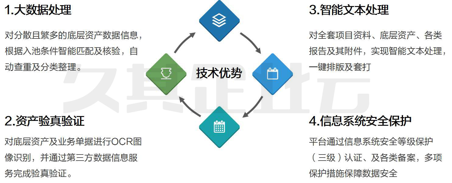 国久数科ABS融资服务平台充分发挥了大数据处理技术优势,实现对底层资产的数字化甄别、自动化核验及信息化管理,具备操作易用性,可以进行数据汇集和统计分析、信息自动识别核对,能够有效提升资产收集和整理效率、规避操作风险,帮助客户对中小微企业优质底层资产“摸得清、看得透、信得过”,引导更多资金精准对接实体经济。