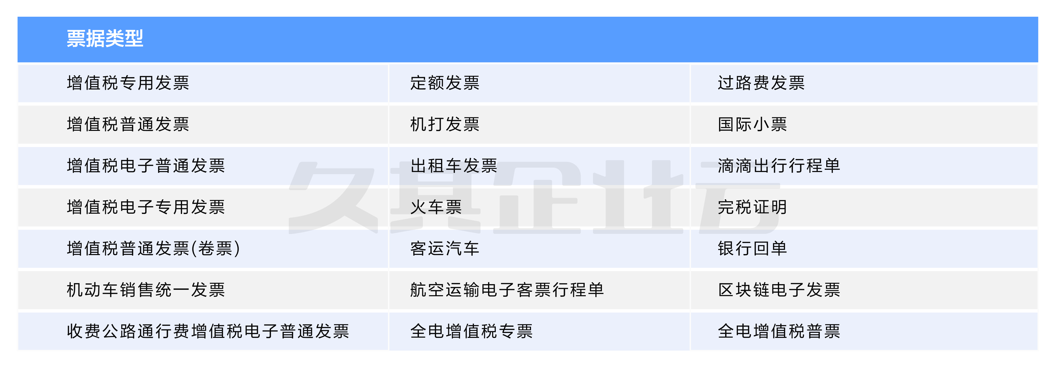 PG 电子影像支持识别票据类型为增值税发票、金税四期全电发票、区块链电子发票、火车票、行程单等21类票据。