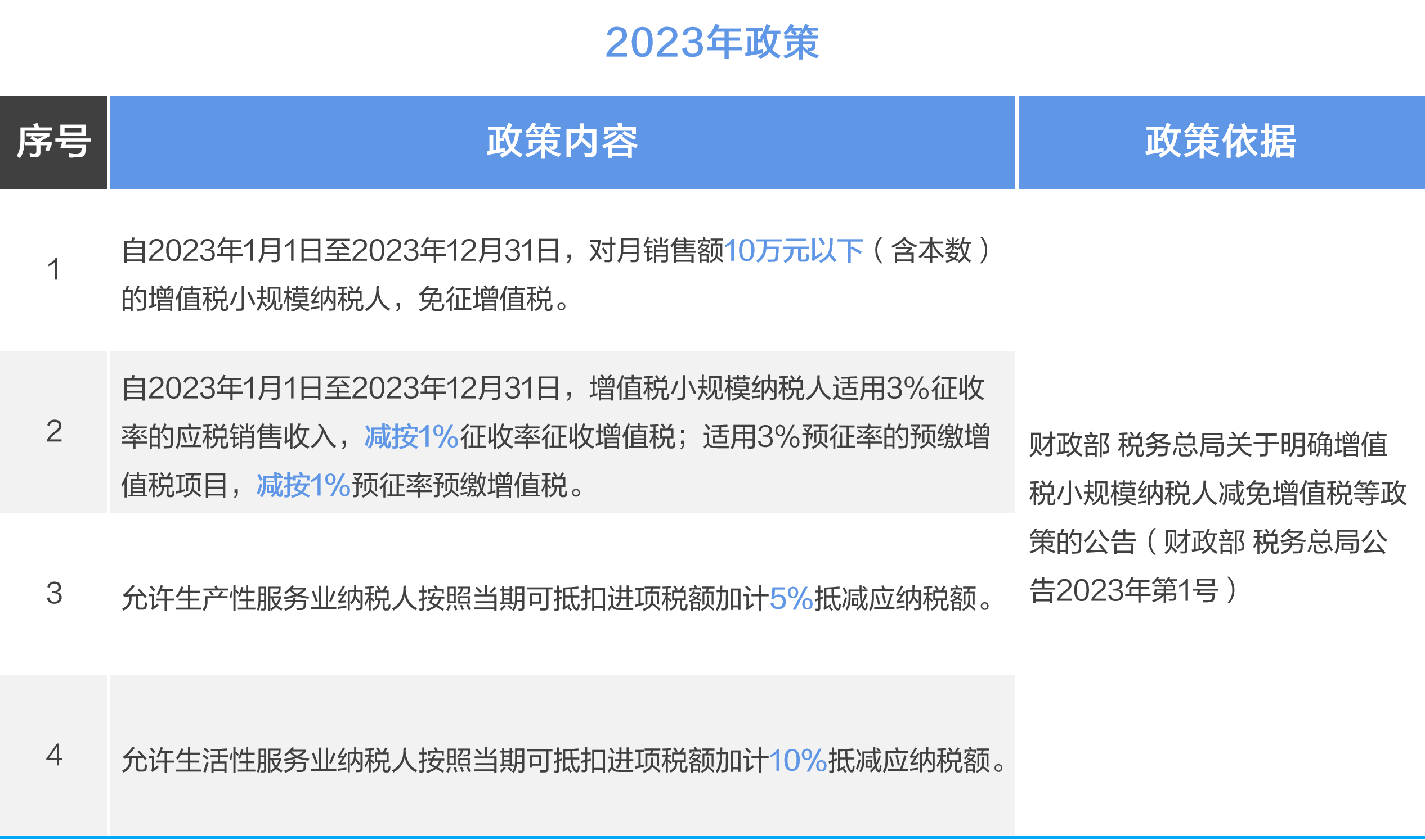 与此同时,2022年及以前针对小规模纳税人相应的一些阶段性优惠政策同步取消、不再延续,变化情况详见下表。