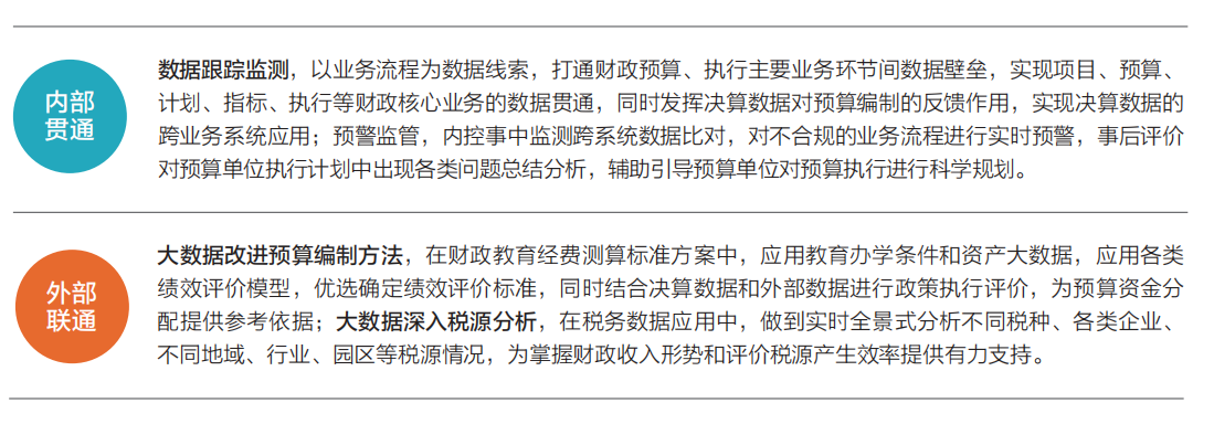 财政的基本职能是代表国家配置资源、管理收支和保证经济稳定与发展。财政业务政策性强、牵涉面广、体系复杂,责任重大。党的十九大明确指出:“健全财政、货币、产业、区域等经济政策协调机制;加快建立现代财政制度,建立权责清晰、财力协调、区域均衡的中央和地方财政关系;建立全面规范透明、标准科学、约束有力的预算制度,全面实施绩效管理”,财政业务分析将为科学理财、精准施策、数字化财政建设发挥重要作用。