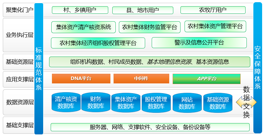 本方案按照顶层设计方法,以“国家-省(自治区)-市-县(区)-乡(镇)-村-组”七级体系建设组织机构关系,以村民身份、财务科目、资产资源分类等作为主数据,并按照“唯一管理,共同引用,有序开放”原则,确保不同子平台间业务的顺利衔接,如某件资产在资产平台、财务平台、公示平台信息内容完全一致,前后业务逻辑合理。