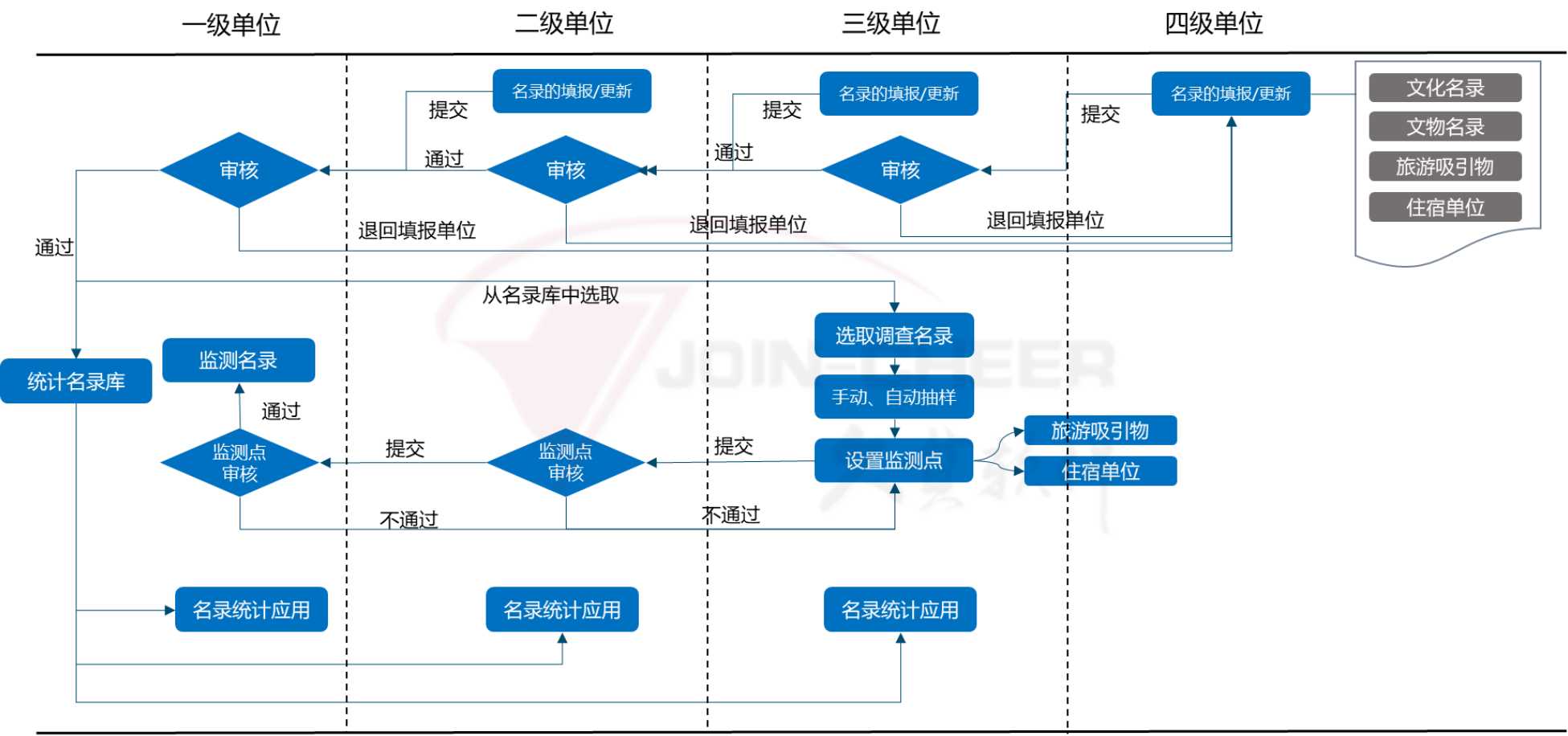 系统支持对于全国文化文物旅游统计、假日旅游监测、地方接待调查、入境调查等业务实现完整的采集过程管理。