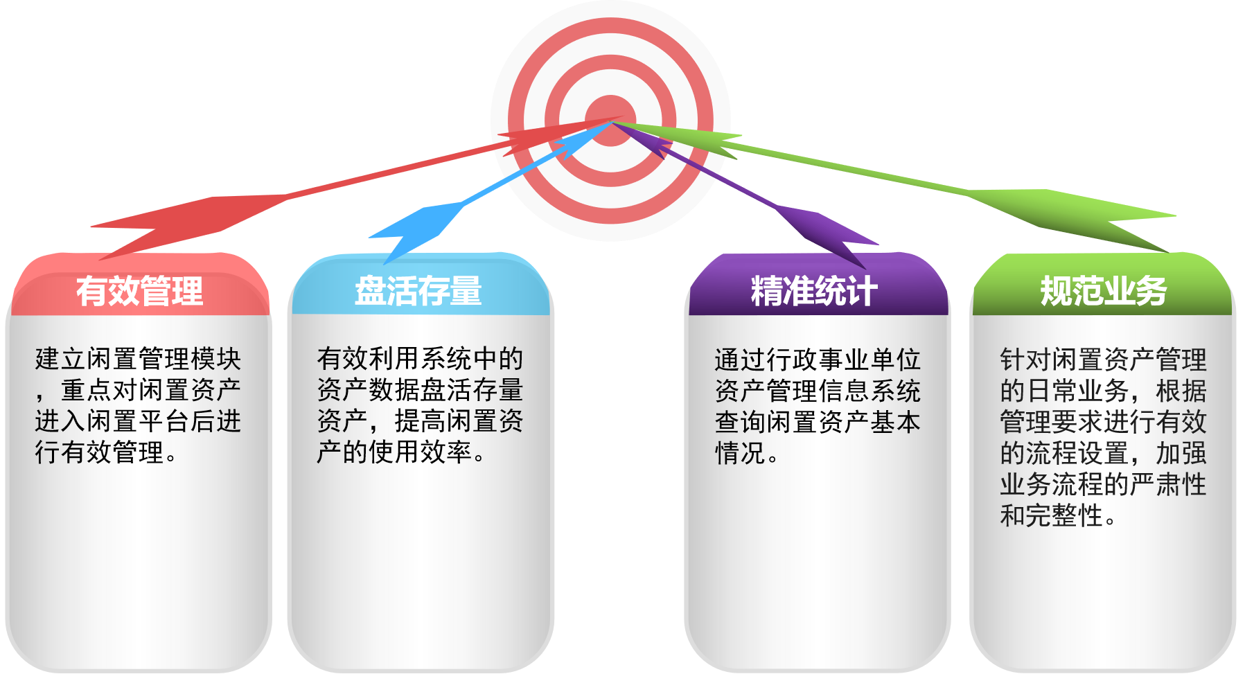 将闲置资产管理起来,既是精细化管理的一种积极探索,又是通过信息化手段,平衡资产分布、调剂余缺,盘活闲置资产的一种有力措施,能够提高行政事业单位资源配置效率,节约用度,减少资金浪费。同时,对于推进国有资产管理体制改革、推动建立配置科学、使用合理、处置优化、监督到位、运转高效的行政事业单位国有资产管理新机制具有明显的促进作用;对于建设节约型机关和建立资源共享机制,将起到积极的推动作用。