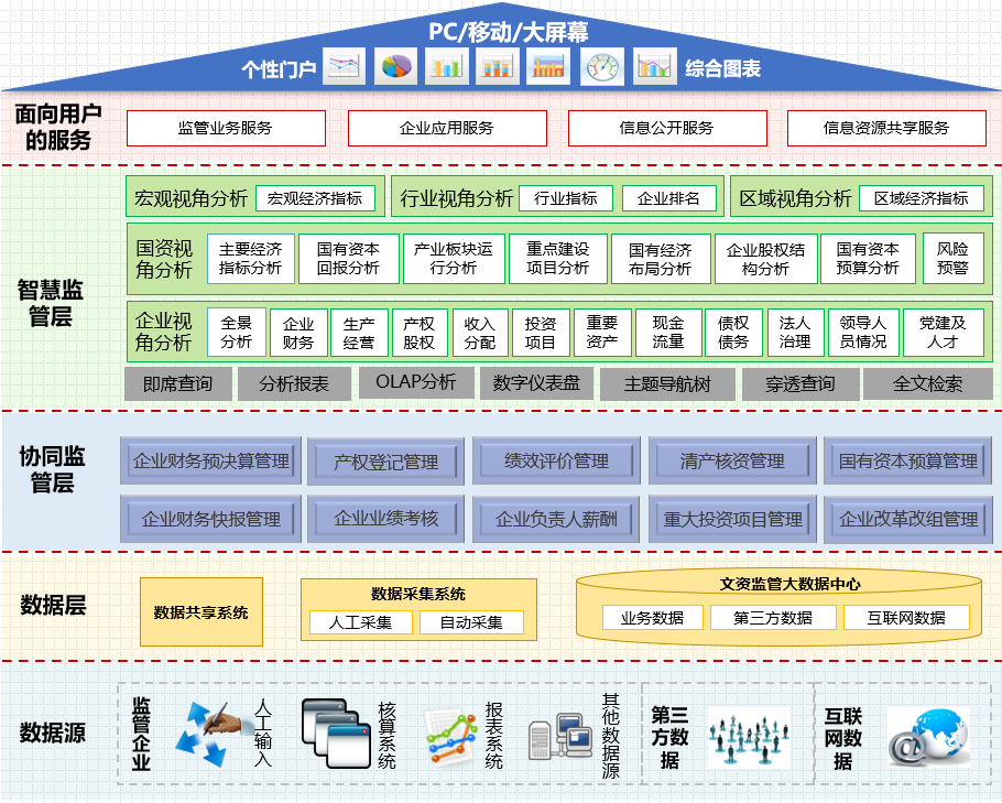 文资监管平台是PG 国有资产监管信息化解决方案的系列产品之一,至此已升级为2.0版本。系统包含企业财务预决算管理、产权登记管理、绩效评价管理、清产核资管理、国有资本预算管理、企业财务快报管理、企业业绩考核、企业负责人薪酬管理、重大投资项目管理、企业改革改组管理等模块,主要实现对文化企业国有资产、财务、人事、预算、重大事项等业务的“事前、事中、事后”全过程监管,将各业务流程和工作内容信息化、网络化管理,达到“监管流程化、流程信息化、数据共享化、信息高效化”的总体目标。