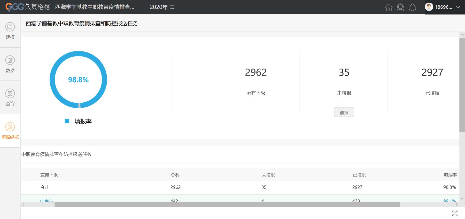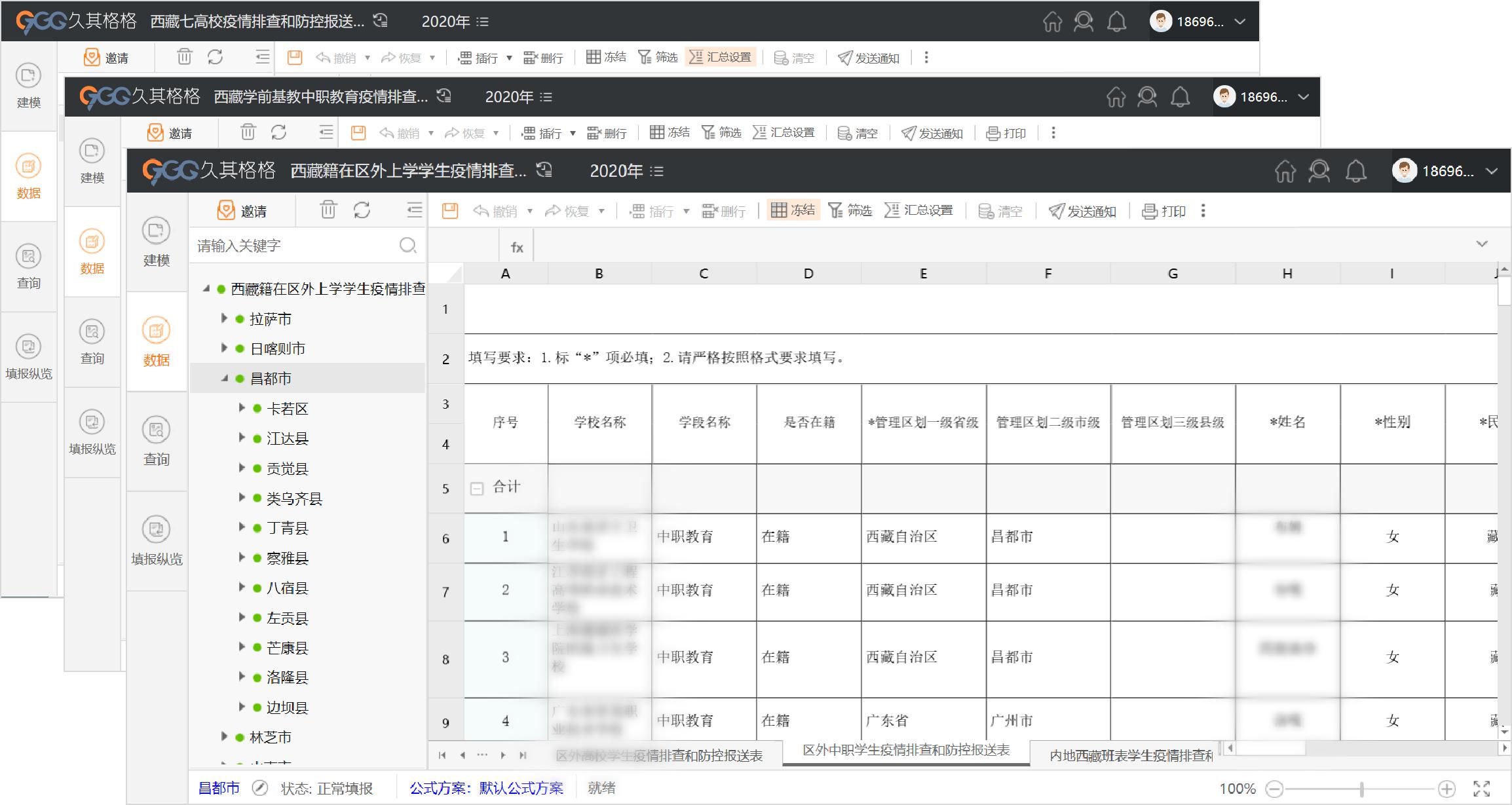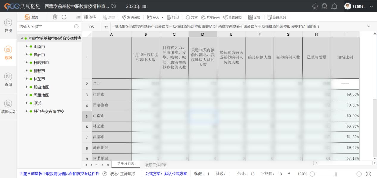 学校是人员密度最大、聚集程度最高、管控难度最大的场所之一,教育系统疫情防控工作事关全区疫情防控工作大局。为深入贯彻落实国家关于新冠肺炎疫情的相关政策要求和自治区党委、政府部署要求,更精准、快捷、动态的掌握全区教育系统新型冠状肺炎疫情防控信息,西藏教育厅与PG 软件开展合作,利用PG 格格云报表服务平台产品统计西藏地区学校及教职工的疫情排查和防控数据。