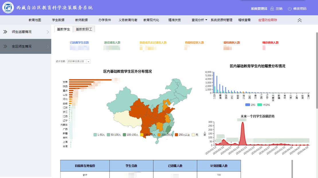 1.西藏籍在区外上学学生疫情排查防控任务:用于统计西藏籍在区外就读的学生情况,包括内地西藏班和西藏籍在外就读的中职、高校学生情况 ;