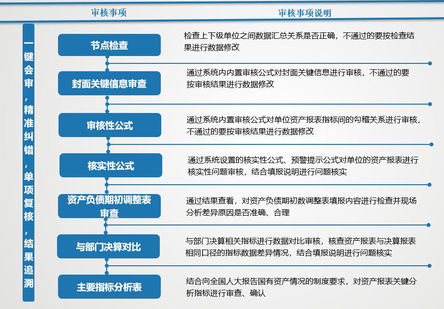 要求建立、完善单位审核机制,加强本单位资产年报数据编报质量,确保同口径资产数据与部门决算、公共基础设施等行政事业性国有资产报表数据的一致性,确保报审材料的真实性、完整性和准确性。