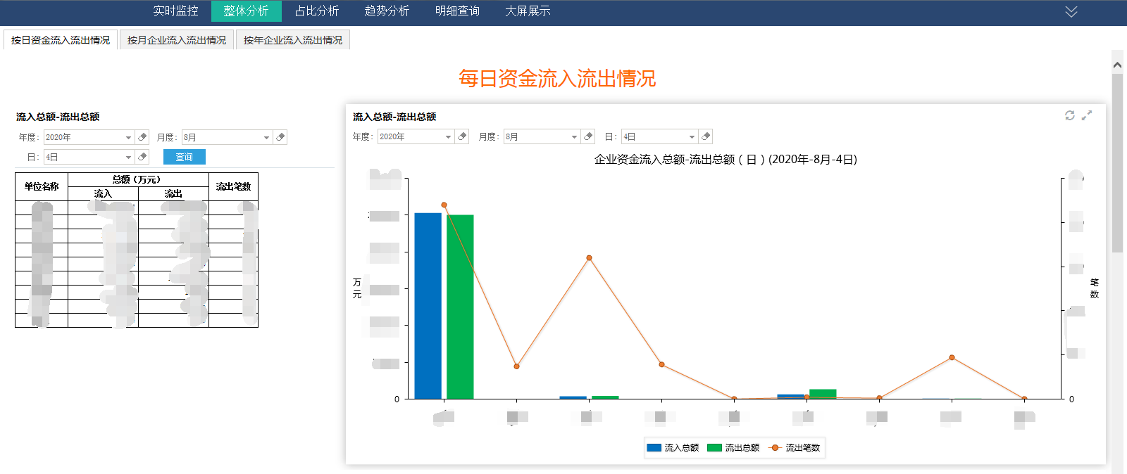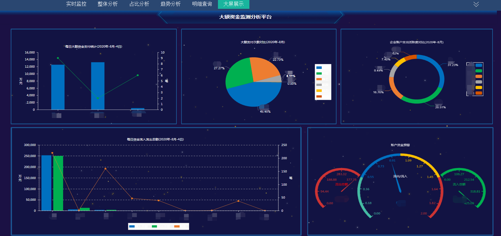 该项目于2019年8月启动,自治区本级国资监管企业通过资金管控平台或开户行银企直联的接口程序,在本工作日结束后、下一工作日上班前将企业当日收支总额、支出笔数、监测额度以上的大额资金支出明细等指标数据自动同步至大额资金监测系统,通过提前预置的多种分析模型和分析方法,将监测数据分析结果多维度的直观展现,从而为自治区国有资产监管工作提供有效的基础数据支撑。