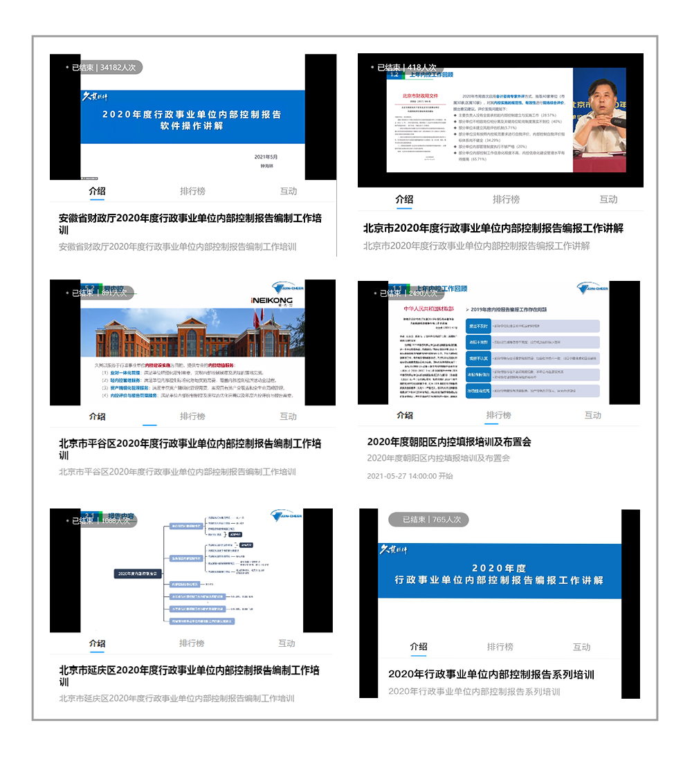目前,各地内部控制报告编报培训工作正如火如荼地进行中,PG 软件采用了“线上直播+现场培训”相结合的模式,相继配合北京市、天津市、湖北省、河南省、安徽省、云南省等全国多个省市开展2020年度内部控制报告编报培训工作,从内控报告编报总体要求、内控报告编报内容详解、内控报告审核内容要求、内控报告系统操作说明、内控报告编报工作总结几方面进行详细解读,使各单位充分了解并掌握内部控制报告编报具体要求,准确而高效地完成本年度内部控制报告的报送工作。