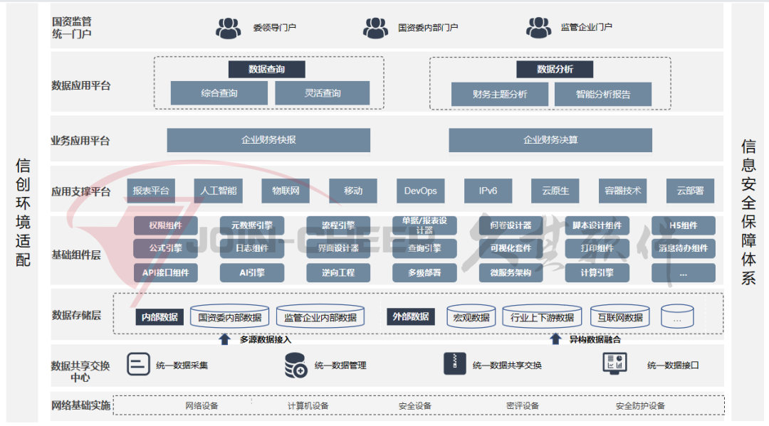 本次系统建设,涵盖了财务数据的采集、上报、审核校验、汇总计算、查询分析等全流程,另外预留了接口能够满足未来与企业端财务系统直接对接的扩展需求;数据上报后将通过数据交换平台统一存储到数据资源库,满足整体国资监管数据查询、分析和决策的需要;运用以平台化能力,整体提升国资监管财务域业务的整体工作质量,使企业快报、企业决算工作充分适应新的政策环境要求。