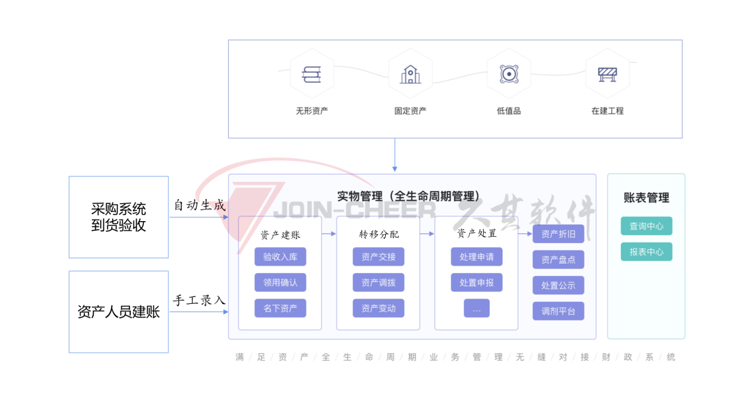 国有资产管理平台旨在维护资产的安全性与完整性,提高资产的使用效益。项目建设将积极响应资产盘活政策,通过系统平台实现线上调剂共享功能,同时打通与项目库管理、采购管理、财务核算等业务系统的数据接口,实现系统间的互联互通,提高资产使用效益和资产数据的利用率。