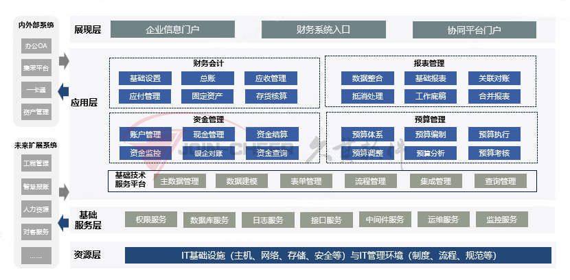 项目将针对外交服务集团财务管理工作现状,结合其财务办公需求,搭建一套全面、集约、高效的智能财务系统。覆盖财务会计、报表管理、资金管理、预算管理四大业务模块,以先进的数智手段支撑现代化财务工作的各项要求。