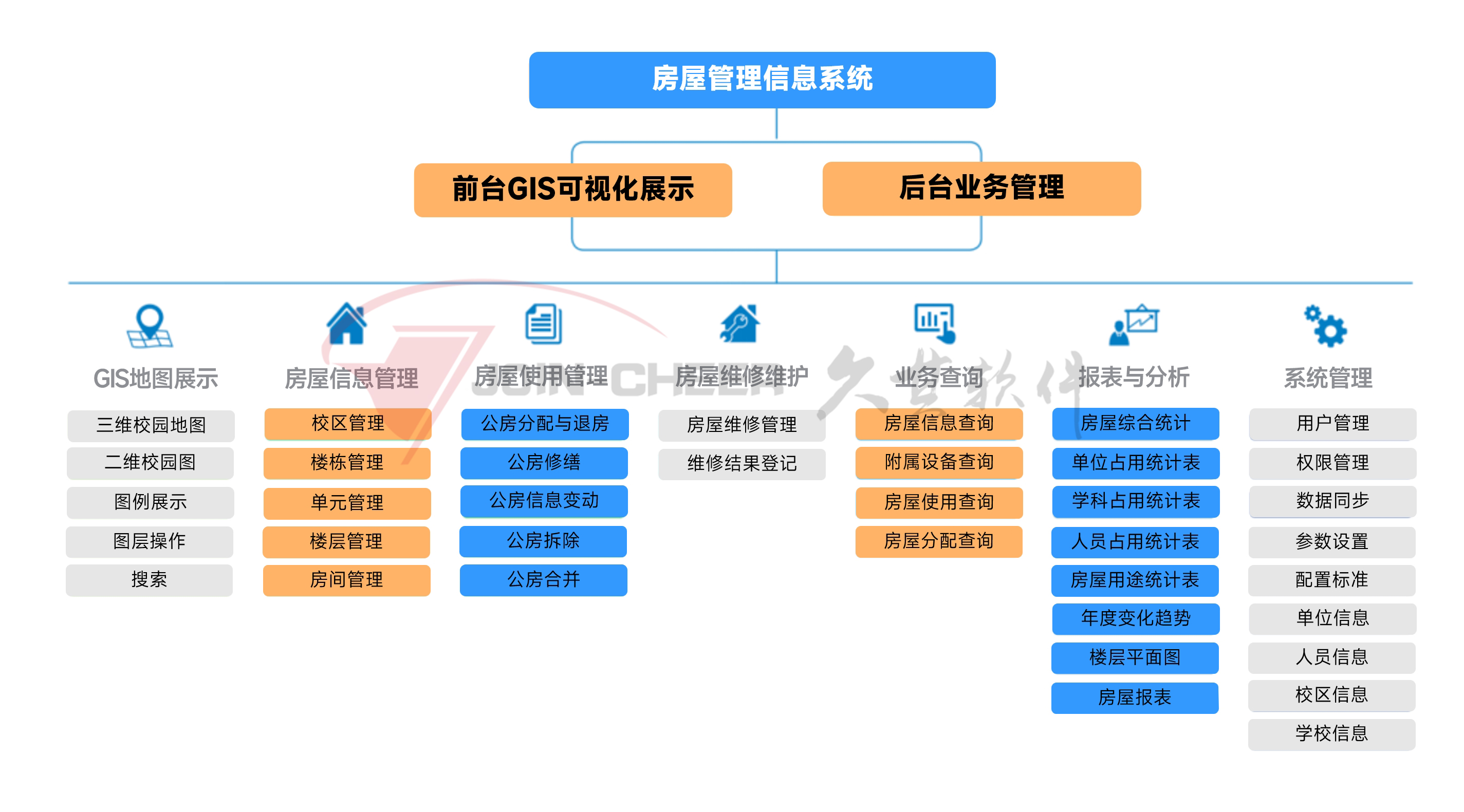 系统将房屋分成校区、楼栋、单元、楼层、房间,进行精确、细致、全面的管理。涵盖房屋信息登记、房间分配、出租、房屋修缮到拆除等业务,实现房屋数据全方位统计分析,提高房屋的使用效率。支持各种统计分析,生成报表;方便用户快速查询房屋数据,合理调配房屋资源。