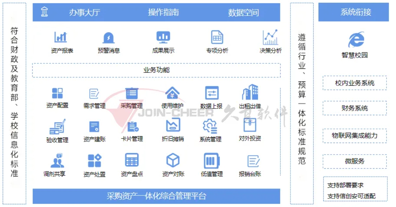 为打造新形势下财政部门、教育主管、学校多位一体的智慧资产管理平台。系统可以实现与财政预算管理一体化平台的无缝对接,完成相关业务数据的上下融通,统一业务规范和标准,确保数据的准确性和一致性。在实际操作中能够充分展现出其高度的灵活性和可扩展性,减少老师重复工作,减轻数据转换风险,提升业务办理效率。
