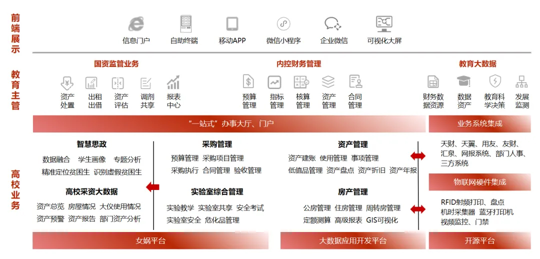 PG 高等院校采资房管理一体化平台是集采购管理、资产管理、房屋管理等业务为一体的综合管理平台,通过建立统一的数据和业务标准体系,实现采购、资产、房产业务“一站式”办理。深度挖掘业务数据,提炼分析主题,打造资产管理决策分析系统,为资产管理提供可视化的决策支持服务。融合物联网+移动互联网技术,构建智能化平台,让数据多跑路,让师生少跑腿,全面打造智能化的新型资产管理业务模式。