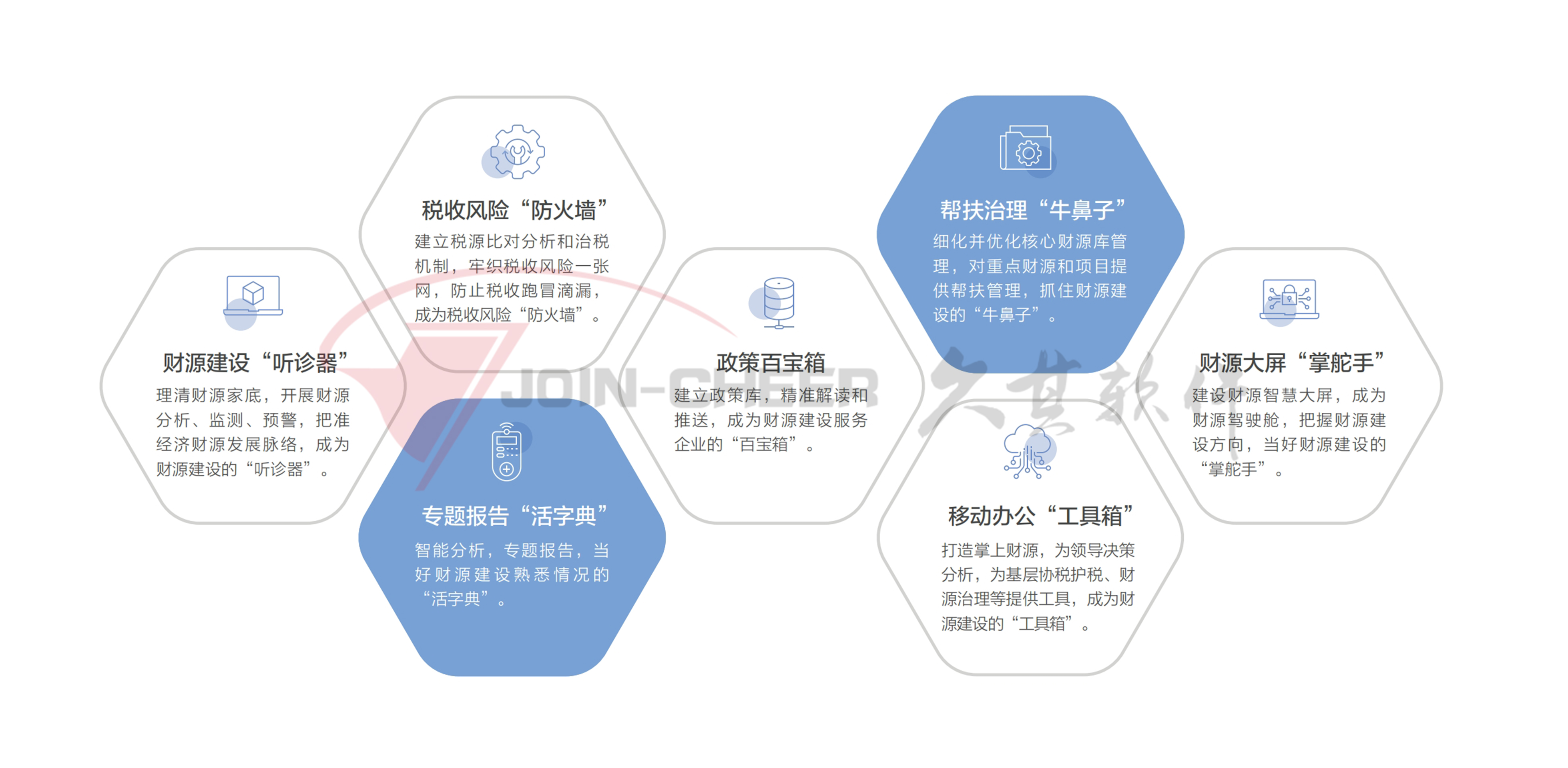 多年深耕财政、税务、企业经营、经济运行等业务所积累和沉淀的一套以数据要素为核心,以大数据、人工智能等新一代信息技术为支撑,以业务沉淀为目标综合性产品平台。
