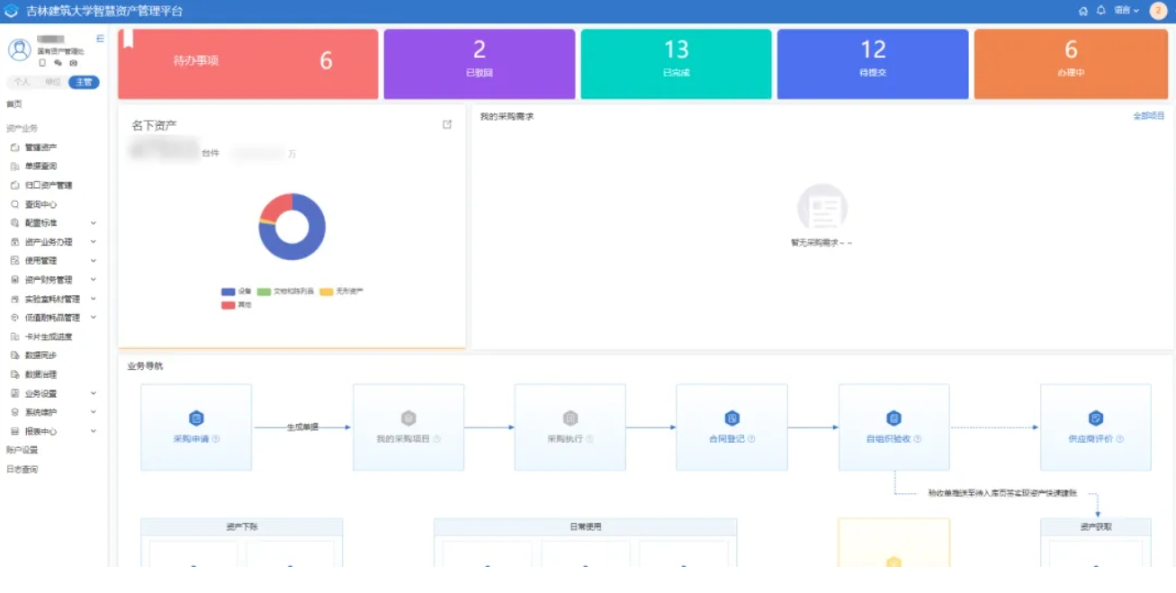 平台实现了资产全的生命周期动态、精细化管理的既定目标,建设内容涵盖资产验收入库、数据初始、转移分配、资产移交、资产调拨、资产处置、折旧管理、查询中心、资产报表、低值易耗品管理、资产盘点、资产维修、配置管理、资产调剂平台、处置公示平台、财务对接、单点登录、移动端等模块,具备了从卡片入库登记、内部管理、移动端审批、外部使用到资产处置下账全过程采用线上信息化管理等功能。