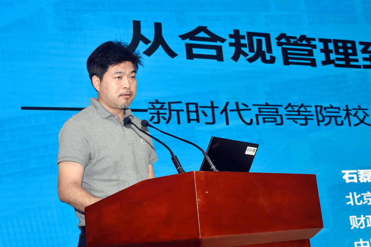 软件执行总裁石磊发表题为《从合规管理到学科赋能——新时代高等院校内部控制建设方向探讨》的主题报告,他结合政策趋势、技术应用与高校实践经验,深入浅出地剖析了内控建设的现状与未来发展方向,为高校内控体系建设提供了前瞻性思路。
