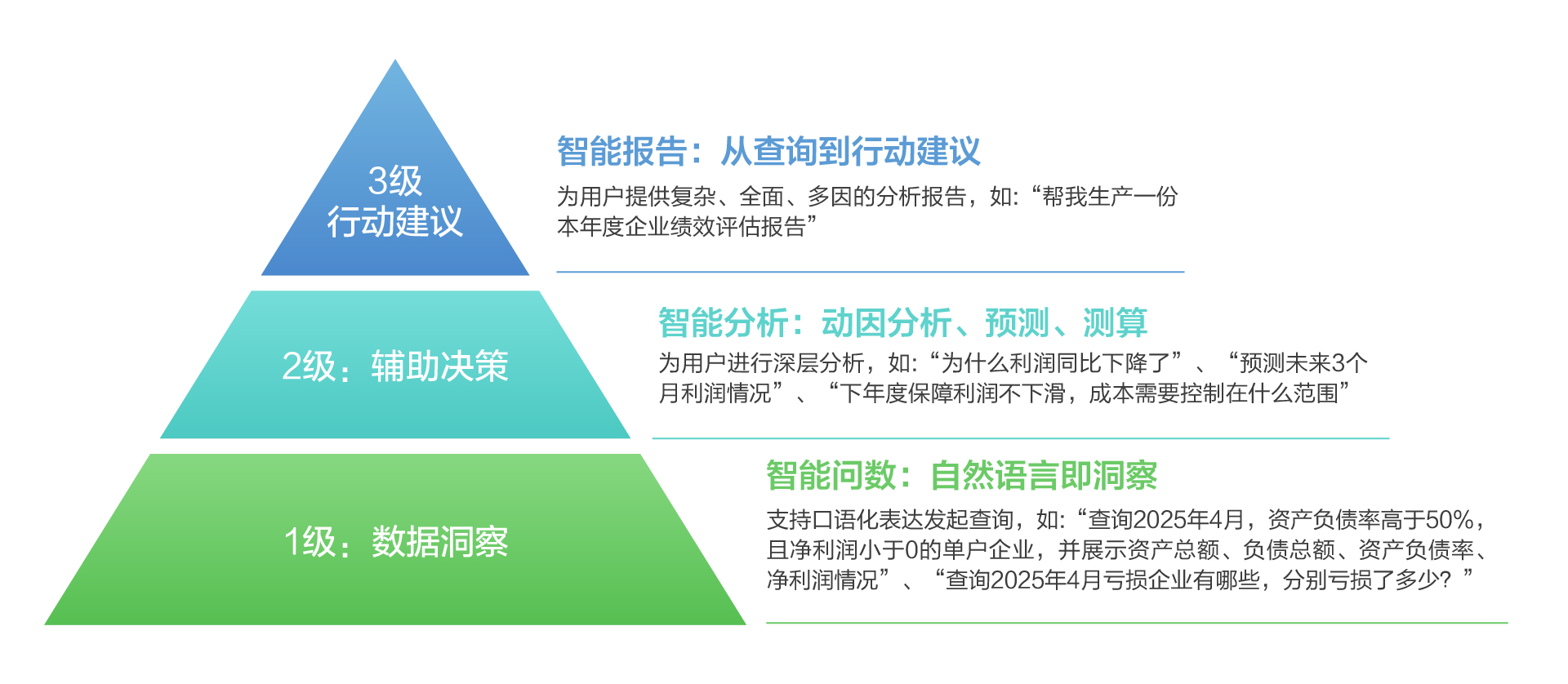 在数字化转型的深度实践中,久智精灵致力于为企业、政府及业财融合场景提供“对话即分析”的轻量化数据体验,让每个人都能用最自然的方式对话数据、洞察价值。应用三大场景为: