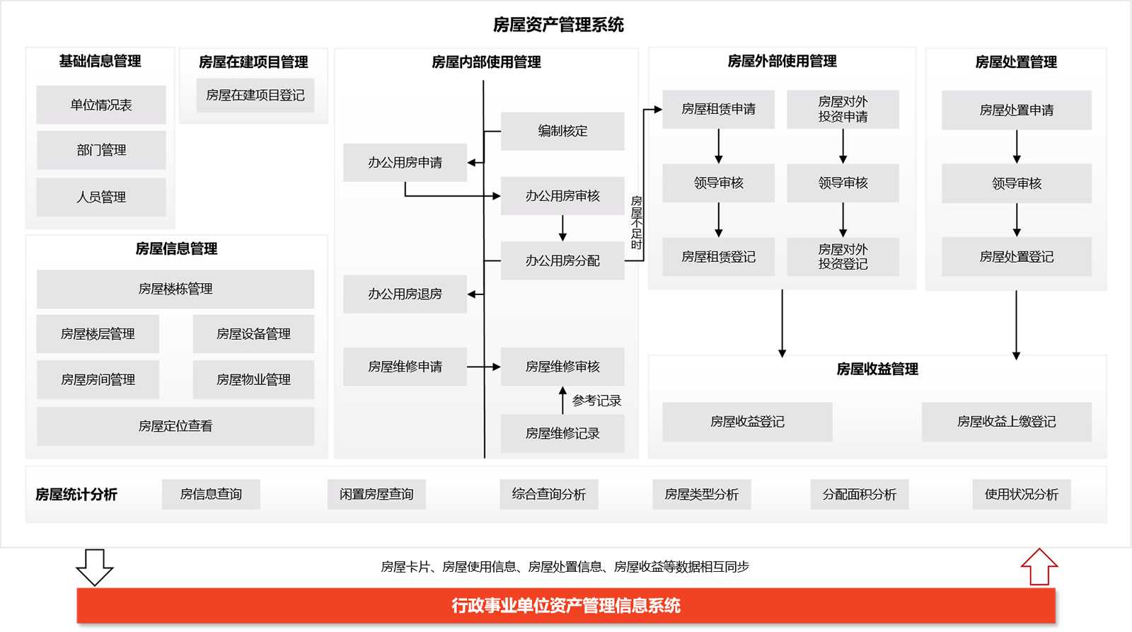 一是按要求对行政事业单位房屋进行全生命周期管理,实现 “同一平台、数据共享、分级授权、统分结合”的新要求。