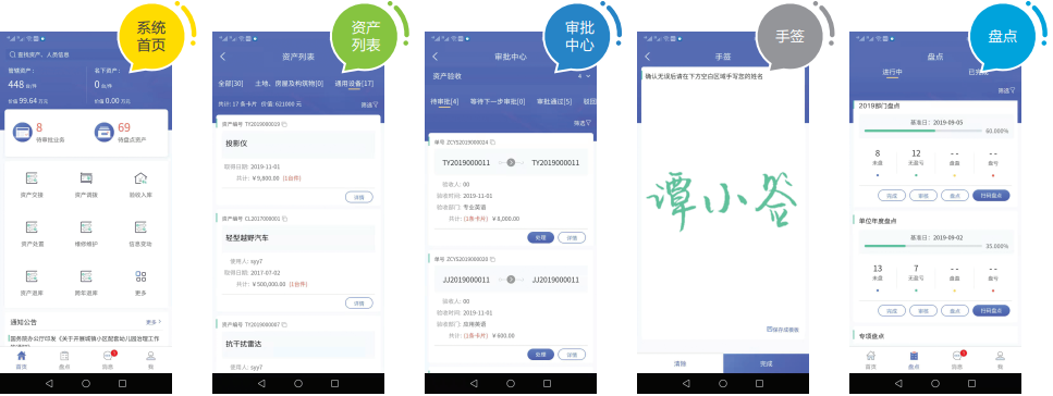 单位版配套提供手机APP、微信小程序等移动应用,提高资产管理工作的便利性与时效性。支持个人名下资产即时查询,落实资产责任大人;通过手机盘点变“一人盘点”为“全员盘点”,使盘点工作更加高效精准;移动审批极大缩短审批周期,提高各环节审批效率。