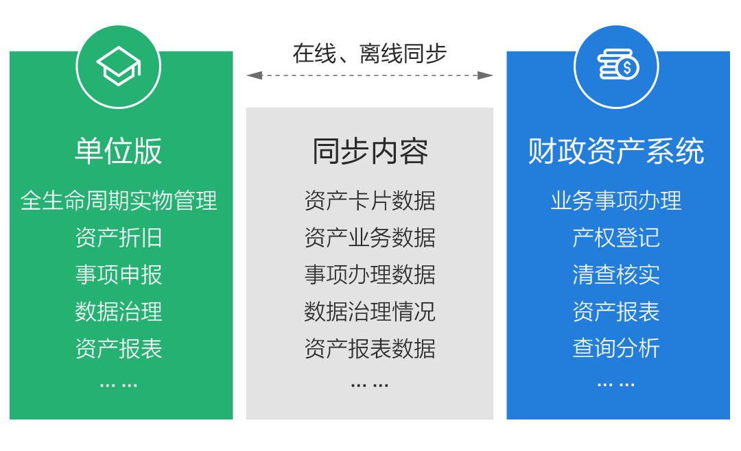 系统满足财政及主管部门的资产数据上报及监管需要,建立统一的资产数据上报体系,包括资产卡片、资产报表、审批事项等保证单位与财政资产系统数据的实时同步。系统支持传统服务器、政务云、公有云等多种部署模式,在云模式下维护简单,安全更有保障,节约投资。
