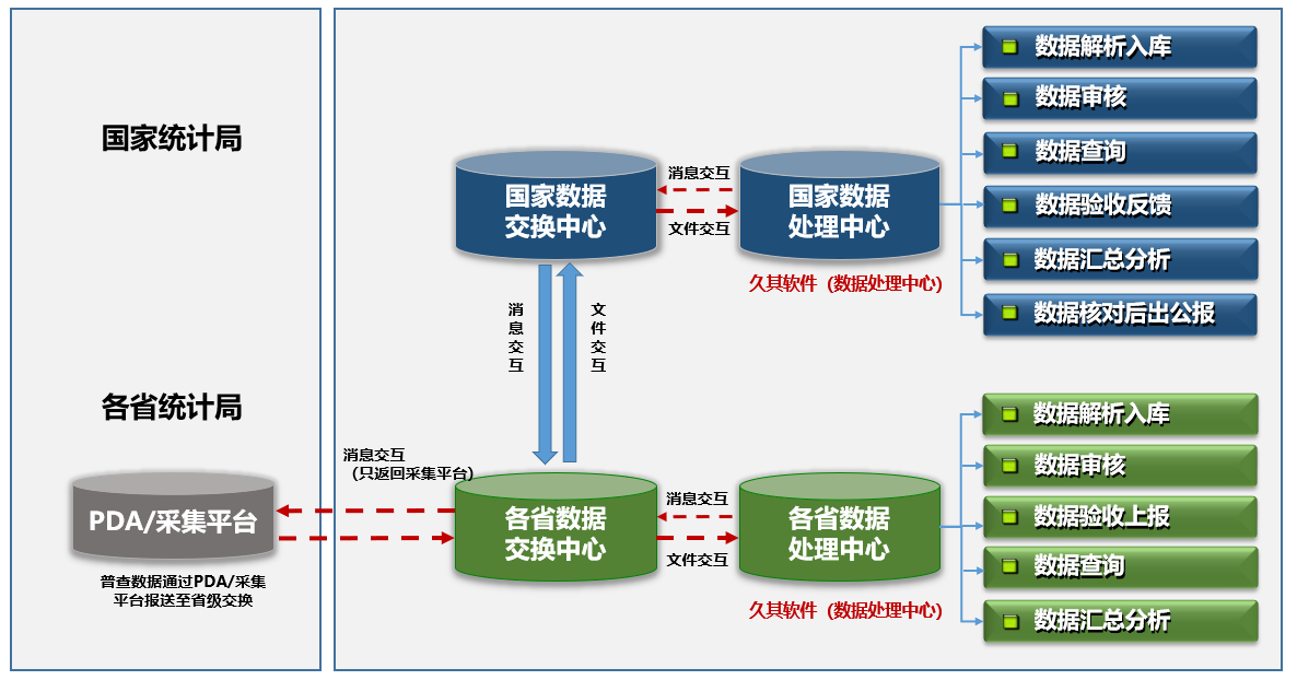 第三次全国农业普查项目是个系统工程,第三次全国农业普查数据处理系统实现数据加载、导入、审核、验收、汇总分析等,同时,数据处理中心系统并不是一个独立运行的系统,需与三农普工程中各应用系统之间相互关联、协同工作。本项目建设主要功能包括:数据录入、数据审核、数据验收、数据查询、数据汇总、系统管理以及数据文件解析处理等,是三中心中承担数据解析入库、数据修改、数据审核、数据反馈、数据验收、数据分析、数据处理的重要节点。