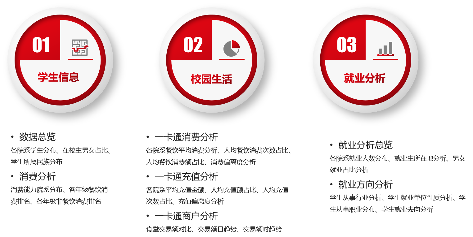 通过多维、深度分析,发现数据价值,让数据说话,用数据决策,为学校相关决策提供量化依据。