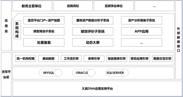 统一数据标准,实现资产数据治理。针对教育数据监管要求,确定国资监管系统的数据标准。在此基础上,开发数据接口,实现数据的实时共享,并对上报数据进行体检。